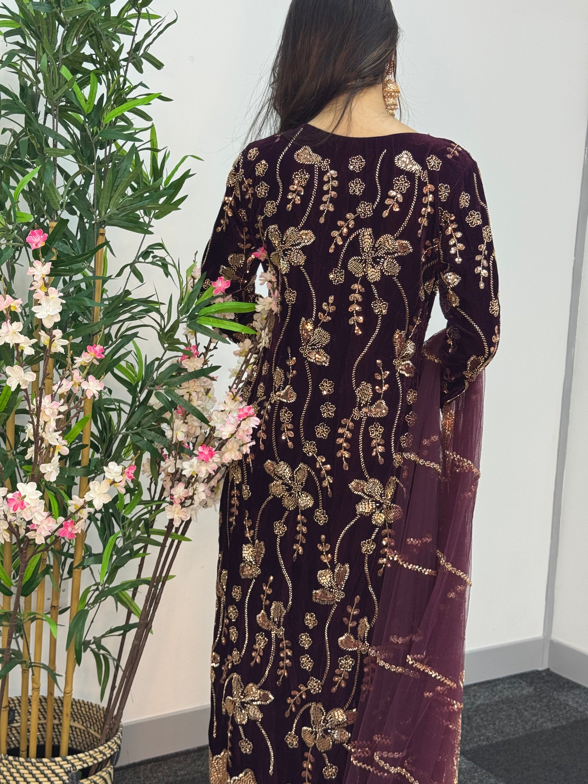 Introducing our New Velvet Cutdana Collection—a stunning blend of luxury, artistry, and contemporary elegance. Each piece showcases heavy, high-quality Cutdana embroidery meticulously crafted on the front, back, and sleeves. The neckline features an embellished adds-work design with a modern cut-out style, creating a bold yet sophisticated look.